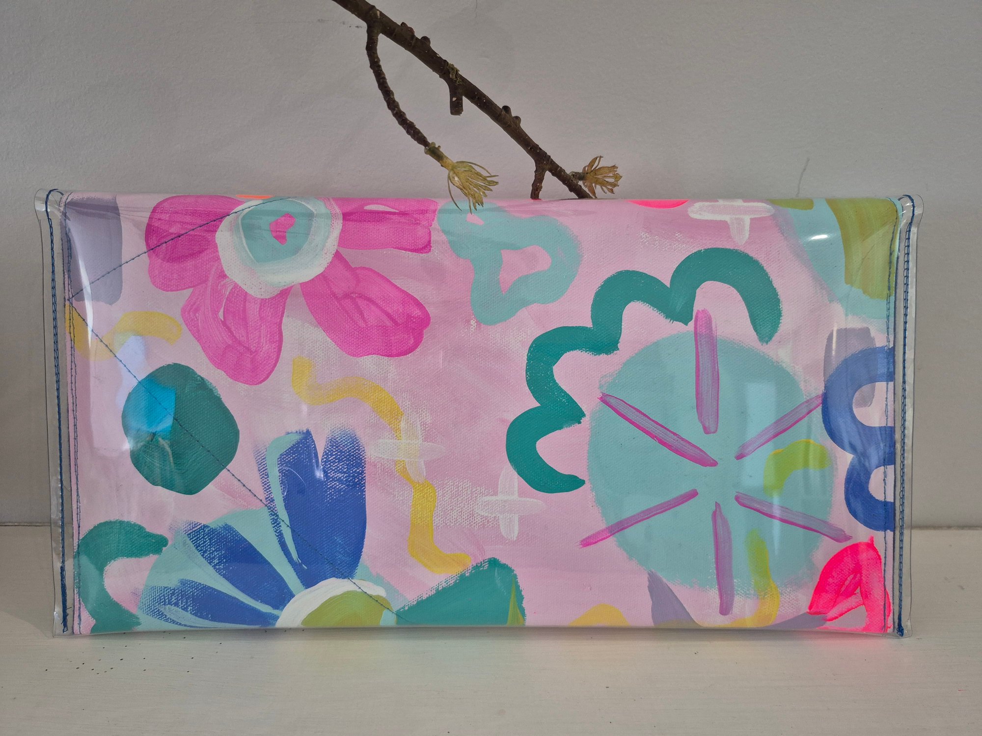 Handpainted canvas design, each lined with soft coloured felt & finished with a protective clear soft vynil outer case.