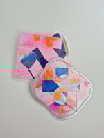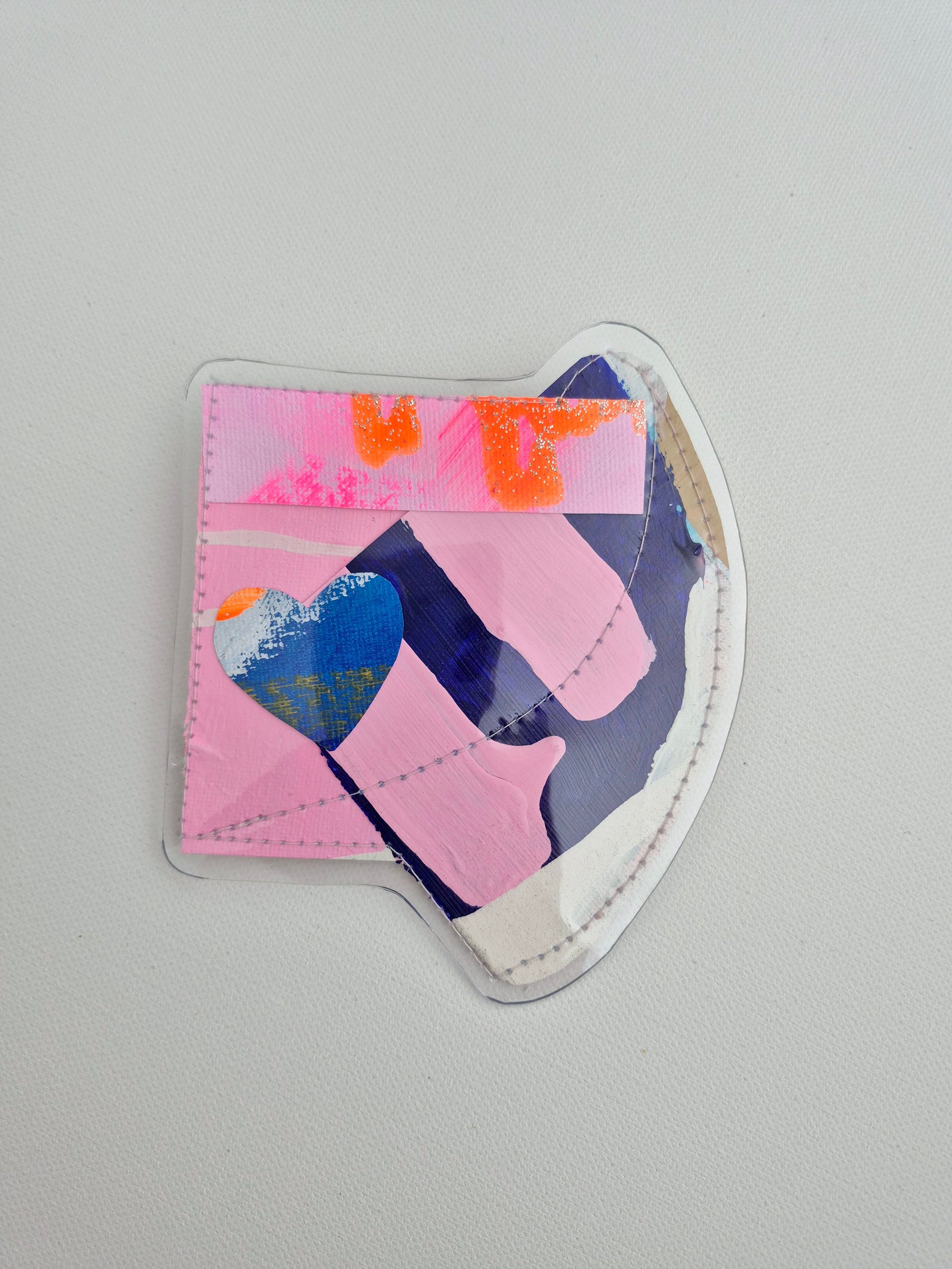Made from handpainted canvas & layered between a soft clear vynil cover & sewn.