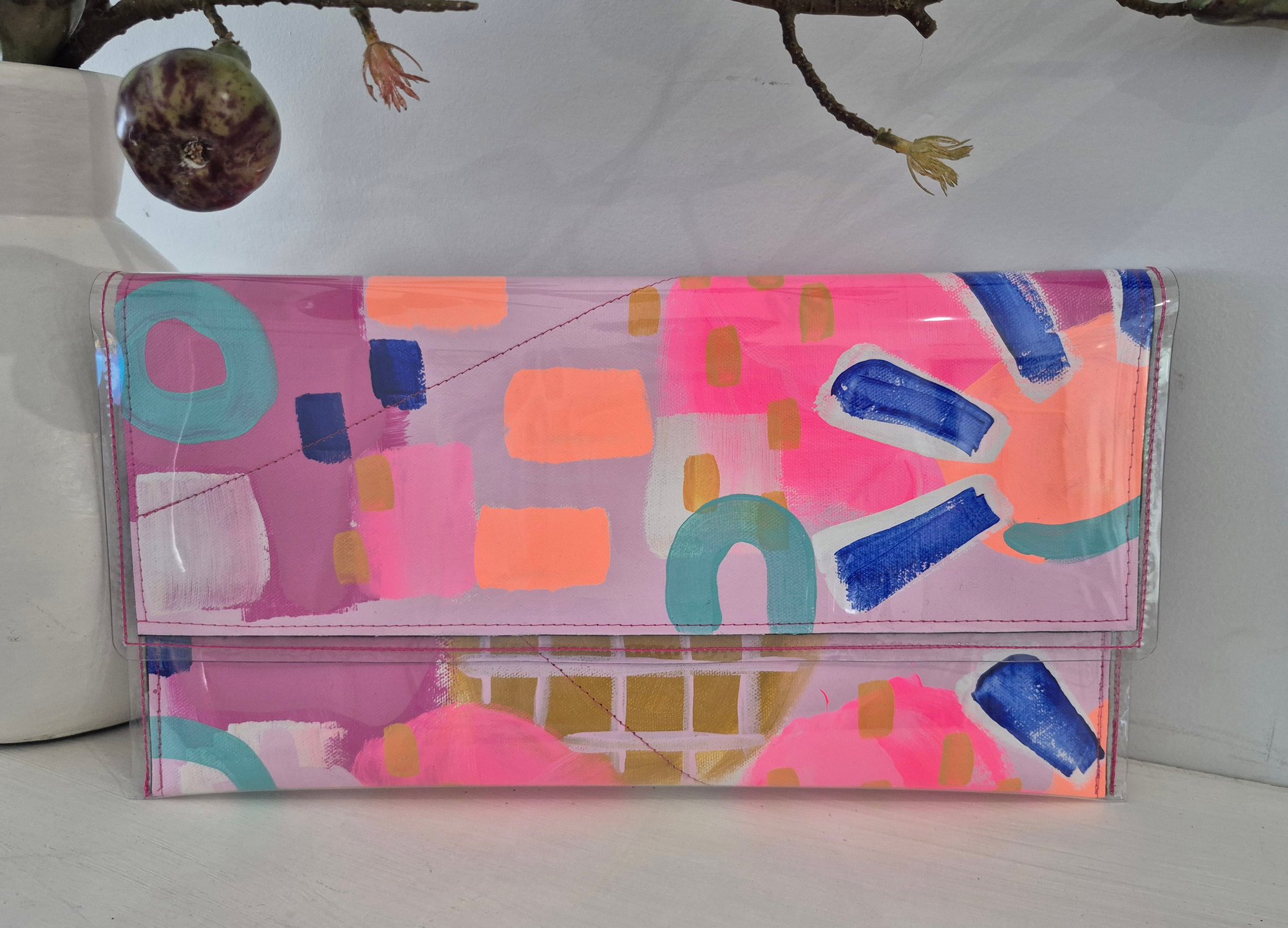 Handpainted canvas design, each lined with soft coloured felt & finished with a protective clear soft vynil outer case.