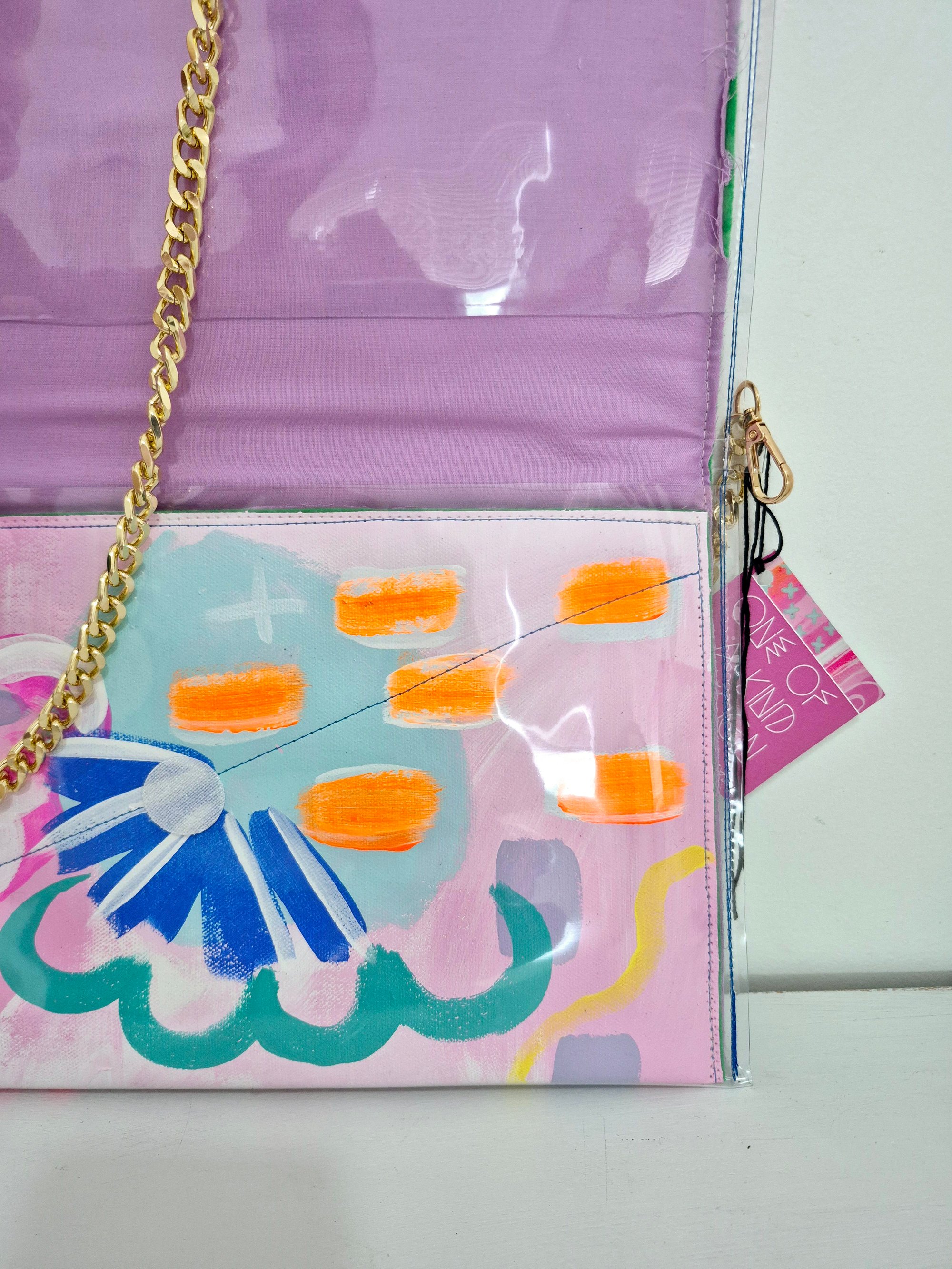 Handpainted canvas design, each lined with a soft cushioned lining & finished with a protective clear soft vynil outer case.