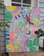Medium - Quality paints, acrylics, oil pastels, double thick canvas, ready to hang